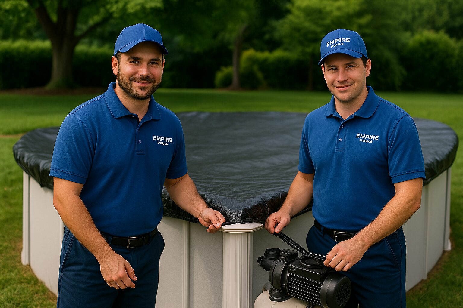 Empire Pools protects Farmingville pools from central Suffolk winters — thorough line blow-outs, skimmer protection,