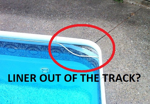 We inspect bead condition, coping track, corners/steps, and water level to determine why the liner released and the best reseat strategy.