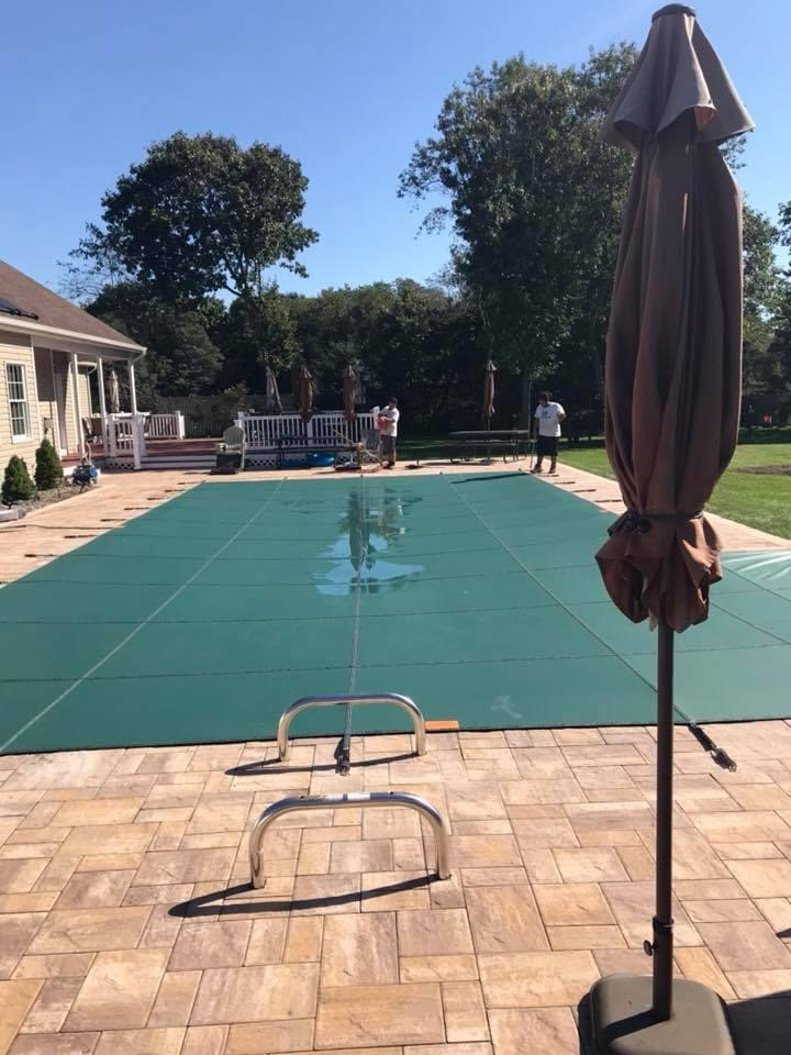 Empire Pools protects Farmingville pools from central Suffolk winters — thorough line blow-outs, skimmer protection,